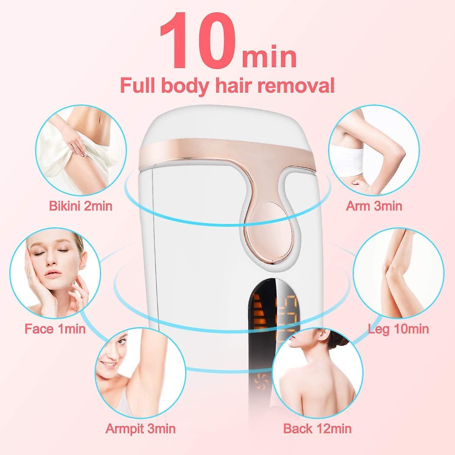 [IPL technology used by dermatologists]-Safe IPL (Intense Pulsed Light) technology, which has been clinically verified by professional dermatologists and beauty salons. The principle is to send out a strong pulse, which is absorbed by the hair follicle, thereby destroying the hair follicle and achieving the purpose of permanent hair removal. It is very safe and easy to use.[Effective and permanent]-Using the IPL hair removal system, clinical studies have shown that after 4 weeks of use, 92% of hair follicles begin to shrink, and hair growth slows down and thins. After 8 weeks of use, 93% of the hair growth was inhibited, and the hair was significantly reduced. 95% of women will enjoy permanent hairless and smooth skin after 12 weeks of use, giving them naturally beautiful skin.[2 flash modes and 5 energy levels]-manual/auto flash mode to meet your requirements for different hair removal parts. Manual mode is mainly used for small areas of hair removal, such as bikini lines, fingers, lips, etc.; automatic mode can be used for large areas of hair removal such as arms, legs, chest, abdomen and back. Five adjustable light energy settings can be adjusted to the most suitable gear according to the sensitivity of your skin.【500,000 FLASH & LED DISPLAY】- Permanent laser hair removal, 500,000 flashes, enough for 9-11 people to remove hair all over the body. LCD design makes all data clear at a glance. It is not battery powered, please plug it into the socket when using it.