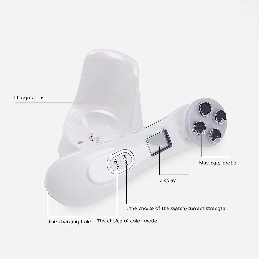 Clamping and liftingNutrition managerAcne removal and whiteningNourishes and anti-wrinklesProduct Name: EMS and RF Beauty Instrument; usage time: 10 minutes / hour; charging time: 3 hours; standby time: 40 days; input voltage: DC5V; Vitration: 7500 Hz; power supply: USB charging; technology: EMS (electrical muscle stimulation), mesoporous, electroporation, RF (radio frequency), LED