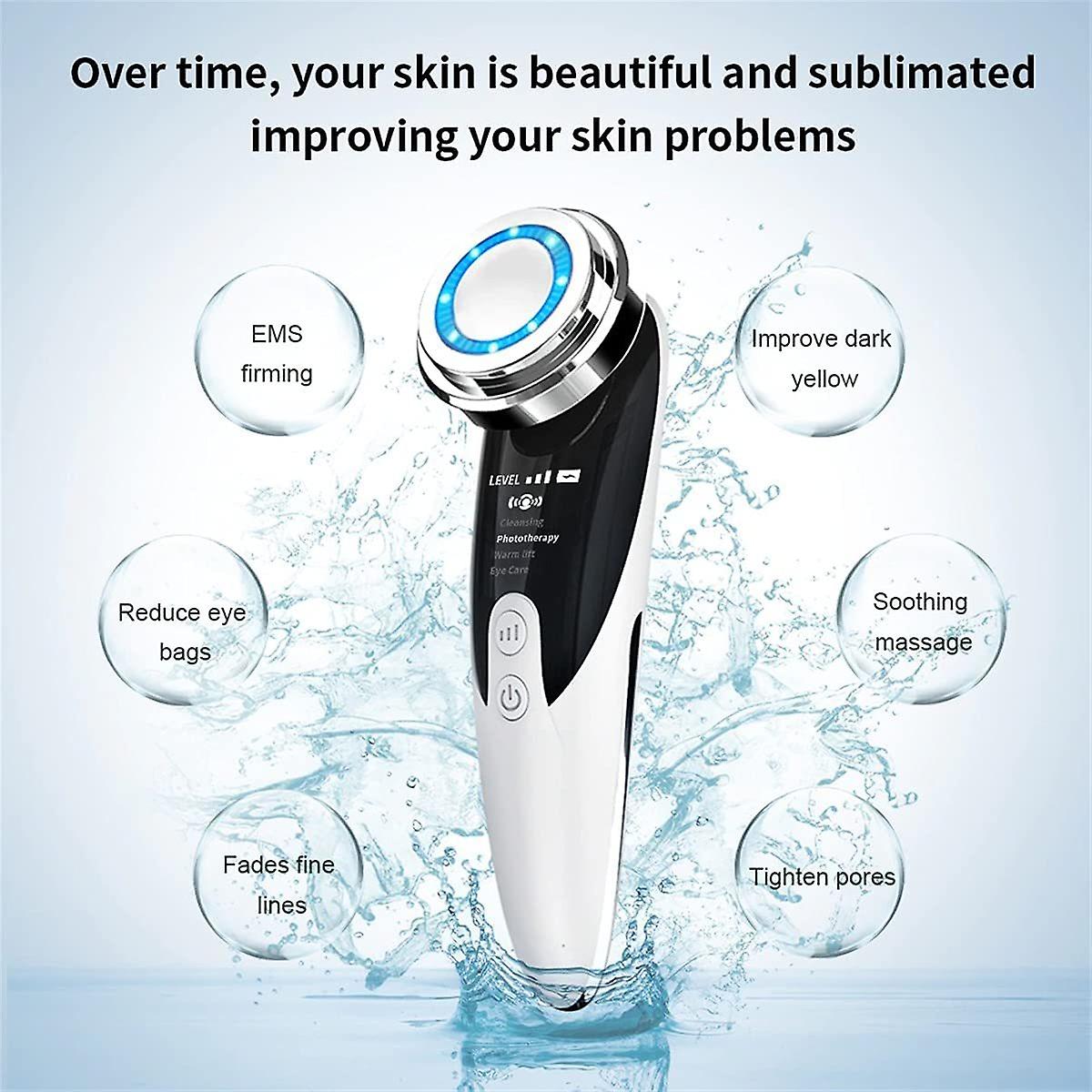 1. Positive and negative ions】 Using the principle of mutual attraction between positive and negative ions, the dirt in the deep pores is discharged by the bioelectric current and it is thoroughly cleaned. The type components enter the lower layer of the skin by iontophoresis.2. [Vibration] Use mechanical vibration and tension stimulation to tighten human skin, increase elasticity, and improve skin cell metabolism.3. [Warm] The warm massage promotes absorption, prolongs the skin texture and makes the skin smooth.4. Red and blue function].5. [4 modes] firm skin, complexion brightening, anti-wrinkle, anti-wrinkle, freckle, cleansing and detoxification.
