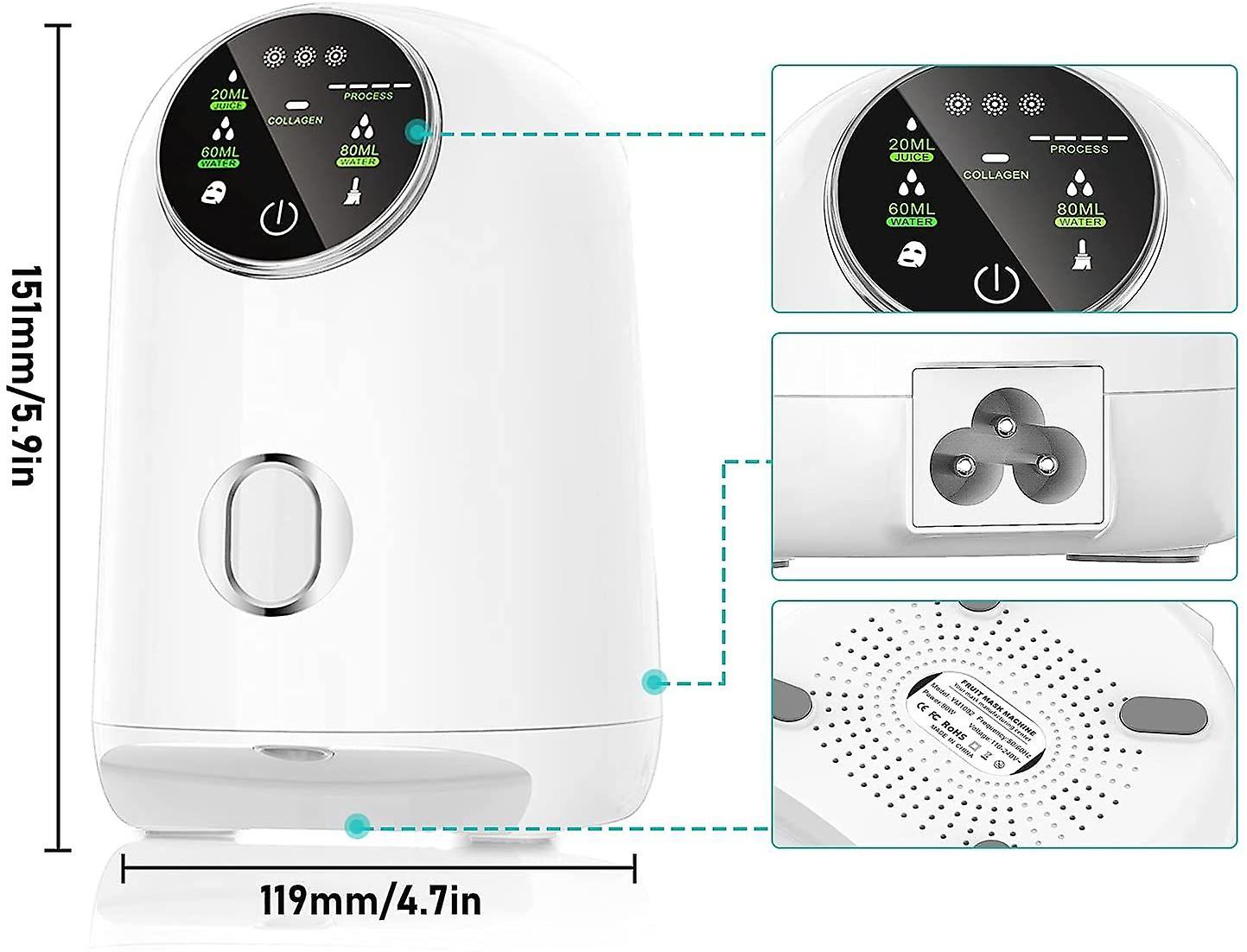 ✔️【Intelligent operation】The large-screen touch control has made some improvements on the original basis. It is more intelligent, simple to operate, intelligent temperature control, and precise control of every degree; through intelligent detection, we will choose the best facial mask making plan for you✔️【Low noise】The noise generated during operation is extremely low and will not affect the lives of others. The compact size can be carried around, whether in the office, at home, or when traveling, you can carry it as a mask✔️【Easy to use 】This fruit and vegetable facial mask machine is easy to operate, you can use it easily, the size of the product: 119*90*150mm; light and portable✔️【Facial skin care】Long-term use of the computer can easily make the skin dull and yellow. Be sure to use fruit and vegetable juice plus collagen mask to replenish facial skin, better absorb nutrients, whiten the skin, and restore skin elasticity and vitality✔️【DIY facial mask machine】 skin care fruit and vegetable facial mask machine is easy to use, natural fruit and vegetable facial mask machine. DIY different pure fruit and vegetable facial masks and eye masks that contain different vitamins to keep tired skin vigorous and healthy